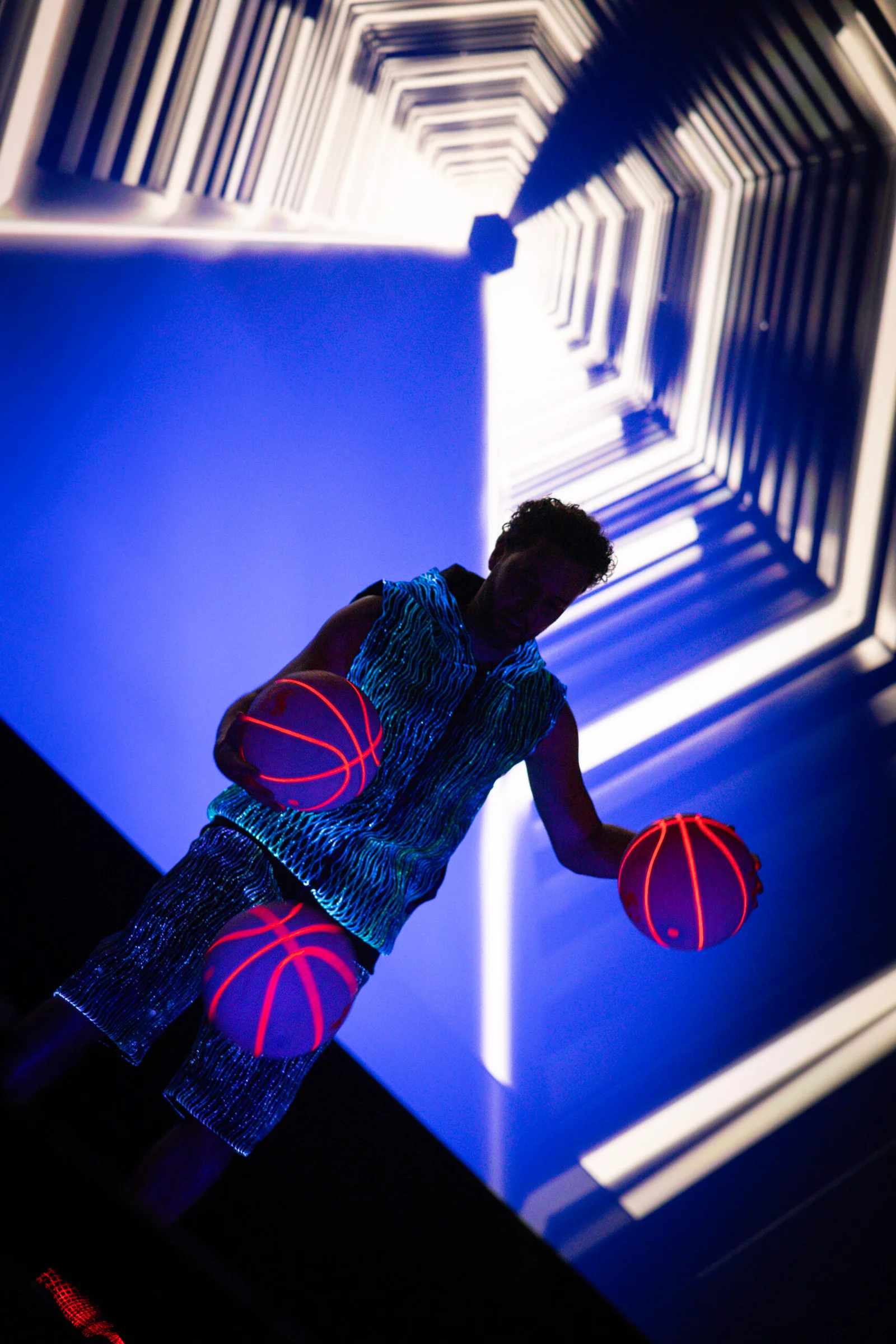 Toen het moment daar was, gingen de gedachten op nul en stonden we volledig in het moment. De zaal werd betoverd door onze LED-verlichting, spectaculaire visuals en de energie van de muziek. De “oe’s” en “ah’s” uit het publiek maakten het helemaal af. Na de show was het tijd voor interactie, en dat is waar Showcase Basketball echt in uitblinkt.